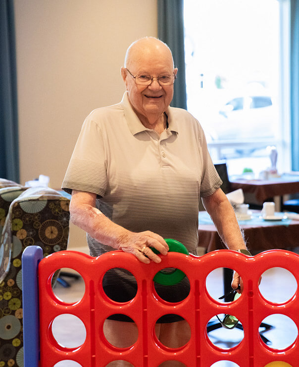 We focus on providing a combination of daily activities that mimic “life at home” to include familiar and straightforward chores. This is complemented by organized activities that are layered in with a focus on physical fitness/movement and cognitive stimulation. We want residents to feel as if they are simply living at home, doing the activities that make them happy.